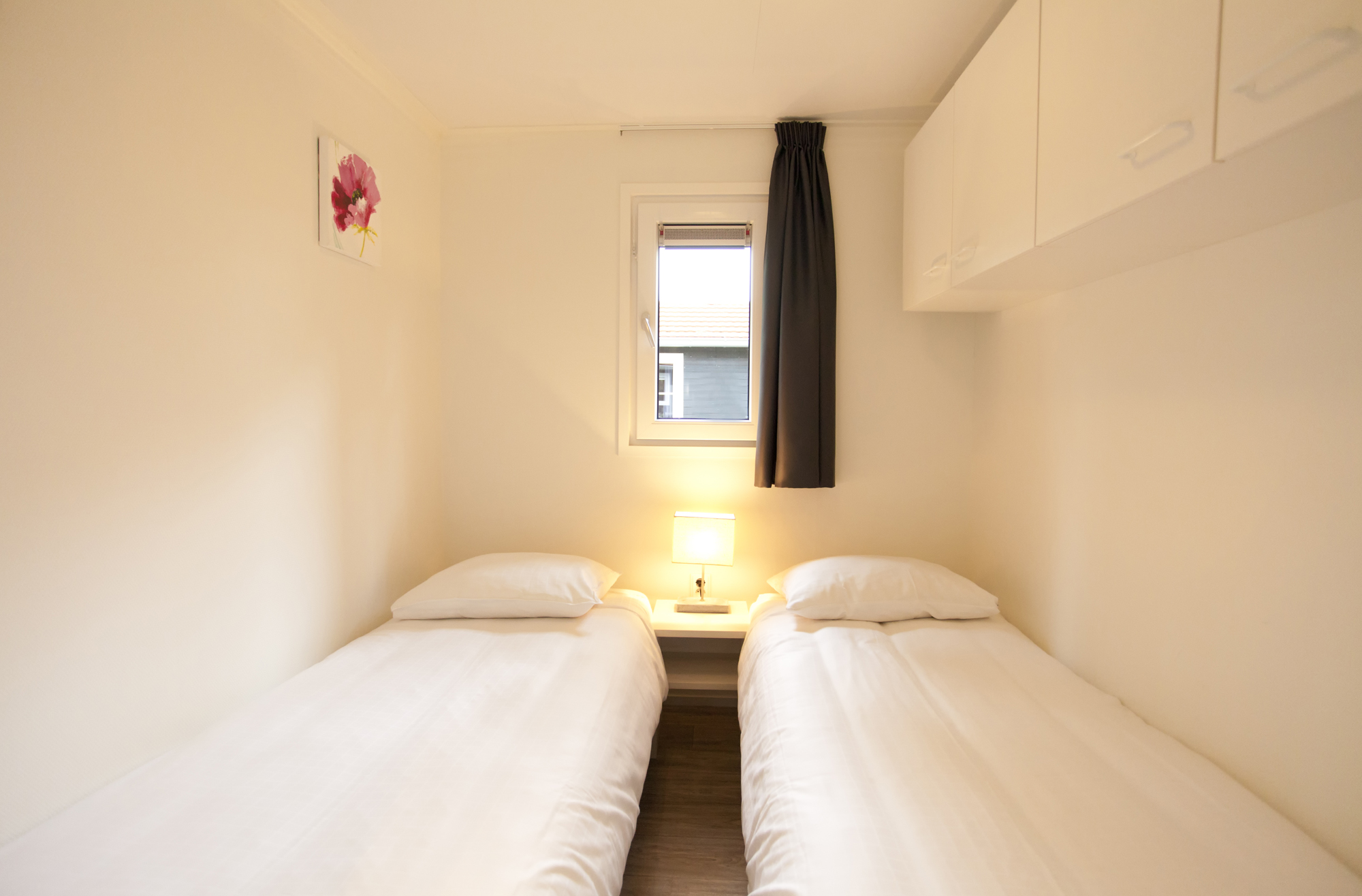 Das Chalet hat 2 Schlafzimmer mit 2 Einzelbetten und 1 Schlafzimmer mit einem Etagenbett. Das Badezimmer hat eine Dusche, Waschbecken und Toilette. Draußen können Sie die Sonne auf der Terrasse mit Gartenmöbeln genießen. Am Superior 6 können Sie 1 Auto parken und Sie können das kostenlose WLAN nutzen.