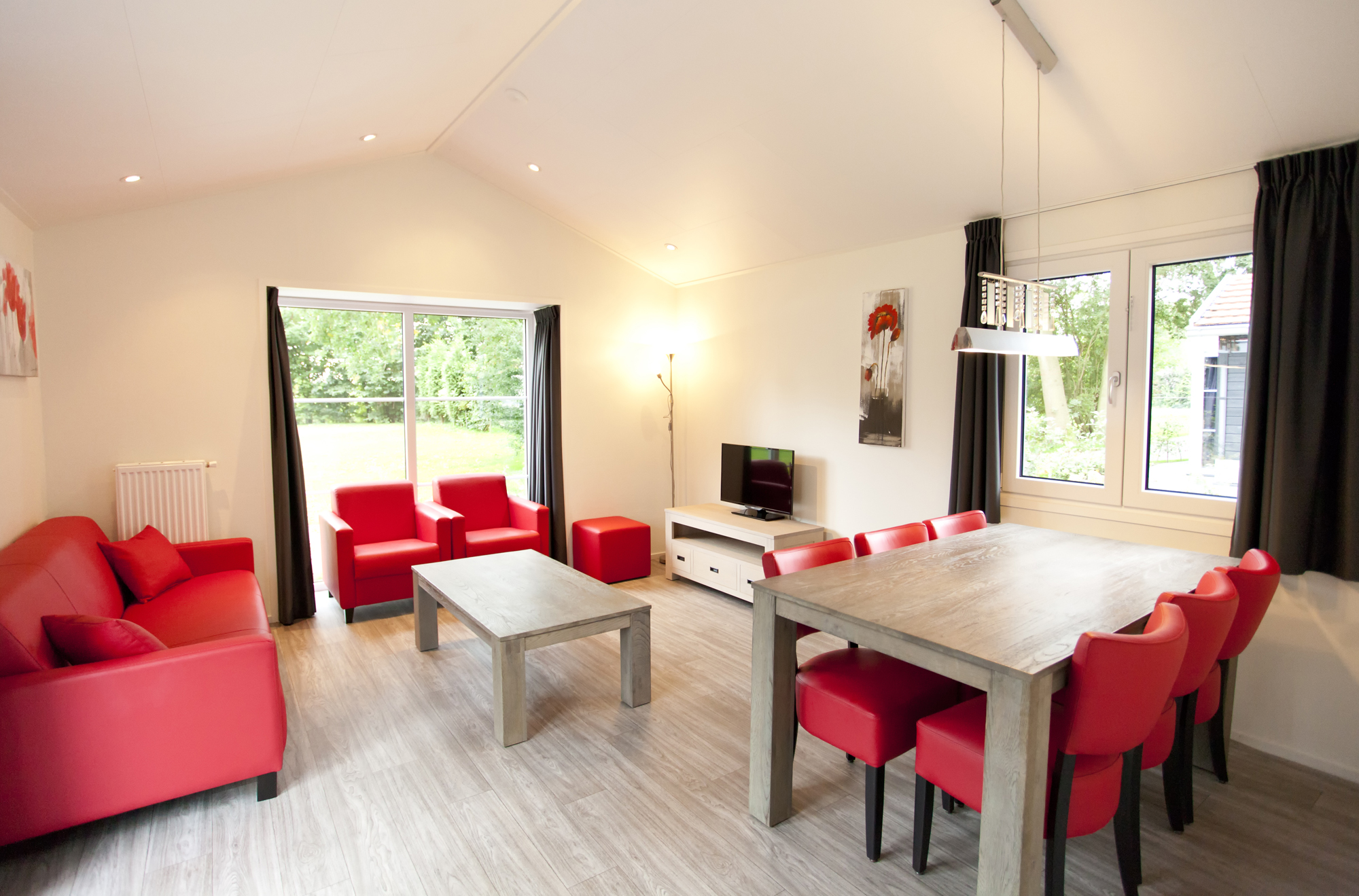 Superior 6 - Das Ferienhaus Superior 6 bietet die Ruhe und den Platz, den Sie sich für Ihren Urlaub wünschen. Das freistehende Chalet ist für 6 Personen geeignet und ist ebenerdig. Der helle Wohnbereich verfügt über eine Sitzecke mit Fernseher, eine Essecke und eine moderne Küche mit u.a. Geschirrspüler, Kombi-Mikrowelle und einer Senseo-Kaffeemaschine oder Filterkaffeemaschine.