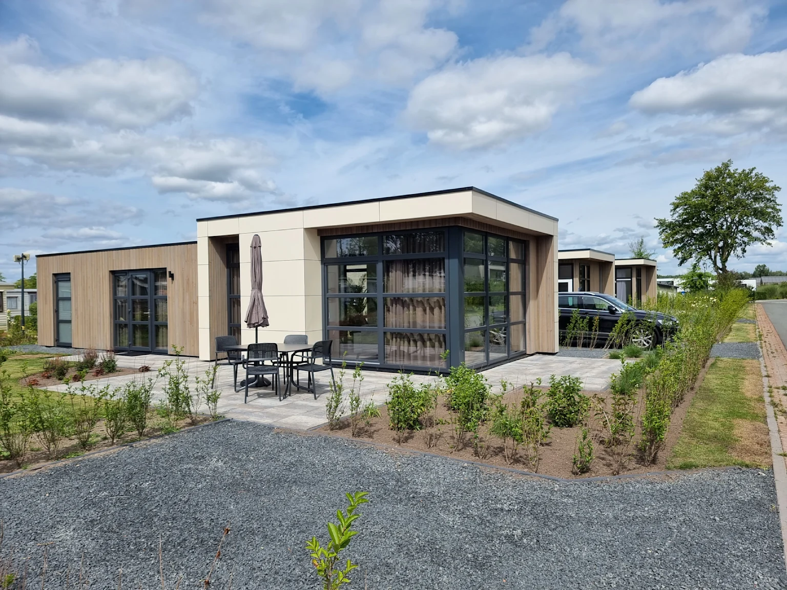 Cube Maximaal - Das Cube Maximaal 4 ist durch eine Wärmepumpe und Sonnenkollektoren ein modernes und nachhaltiges Haus. Das Haus ist ebenerdig und für 4 Personen geeignet. Das helle Wohnzimmer hat eine gemütliche Sitzecke, einen Esstisch mit Stühlen und eine Küche mit Filterkaffeemaschine, Kombi-Mikrowelle und Geschirrspüler. Das Chalet hat 2 Schlafzimmer, eins mit einem Doppelbett und eins mit 2 Einzelbetten. Es gibt ein Badezimmer mit einer begehbaren Dusche und einem Waschbecken. Die Toilette ist vom Badezimmer getrennt. Draußen befindet sich eine möblierte Terrasse. Es gibt einen Parkplatz und kostenfreies WLAN.