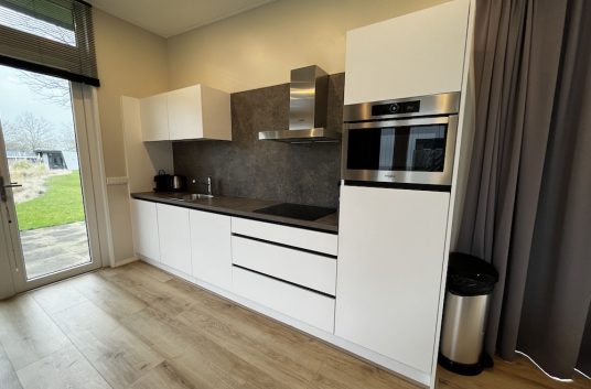 Modus Wellness 2 - De Modus Wellness 2 doet denken aan een luxe hotelkamer plus heerlijke wellnessfaciliteiten. Het gelijkvloerse en vrijstaande chalet biedt plaats aan 2 personen. De woon-slaapkamer is warm ingericht. U vindt er een tweepersoonsbed met een zogenaamde sterrenhemel als verlichting, een eethoek en een zithoek met televisie. Er is een badkamer met een ligbad, ruime regendouche, wastafel en traditionele sauna. De open keuken is onder andere uitgerust met een vaatwasser, koelkast en een filter koffiezetapparaat. Ook is er een apart toilet aanwezig. Buiten is een terras met tuinmeubilair. U kunt 1 auto bij het chalet parkeren en er is wifi aanwezig.