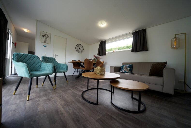Pavilon Mystique - Der Haustyp 'Pavillon Mystique' ist geräumig, komfortabel und bietet ein optimales Preis-Leistungs-Verhältnis. Er ist wartungsarm und komplett mit langlebigen Materialien ausgestattet, was ihm ein attraktives und hochwertiges Aussehen verleiht. Warme Farbtöne geben dem Haus einen einladenden und gemütlichen Charakter. Der 'Pavillon Mystique' hat zwei Schlafzimmer und bietet Platz für bis zu 4 Personen. Darüber hinaus verfügt das Haus über einen hellen Wohnbereich, eine praktische Küche mit hochwertigen Einbaugeräten und ein modernes Badezimmer mit Dusche und WC. Vom Wohnzimmer aus erreichen Sie die geflieste Terrasse und das Gartengrundstück