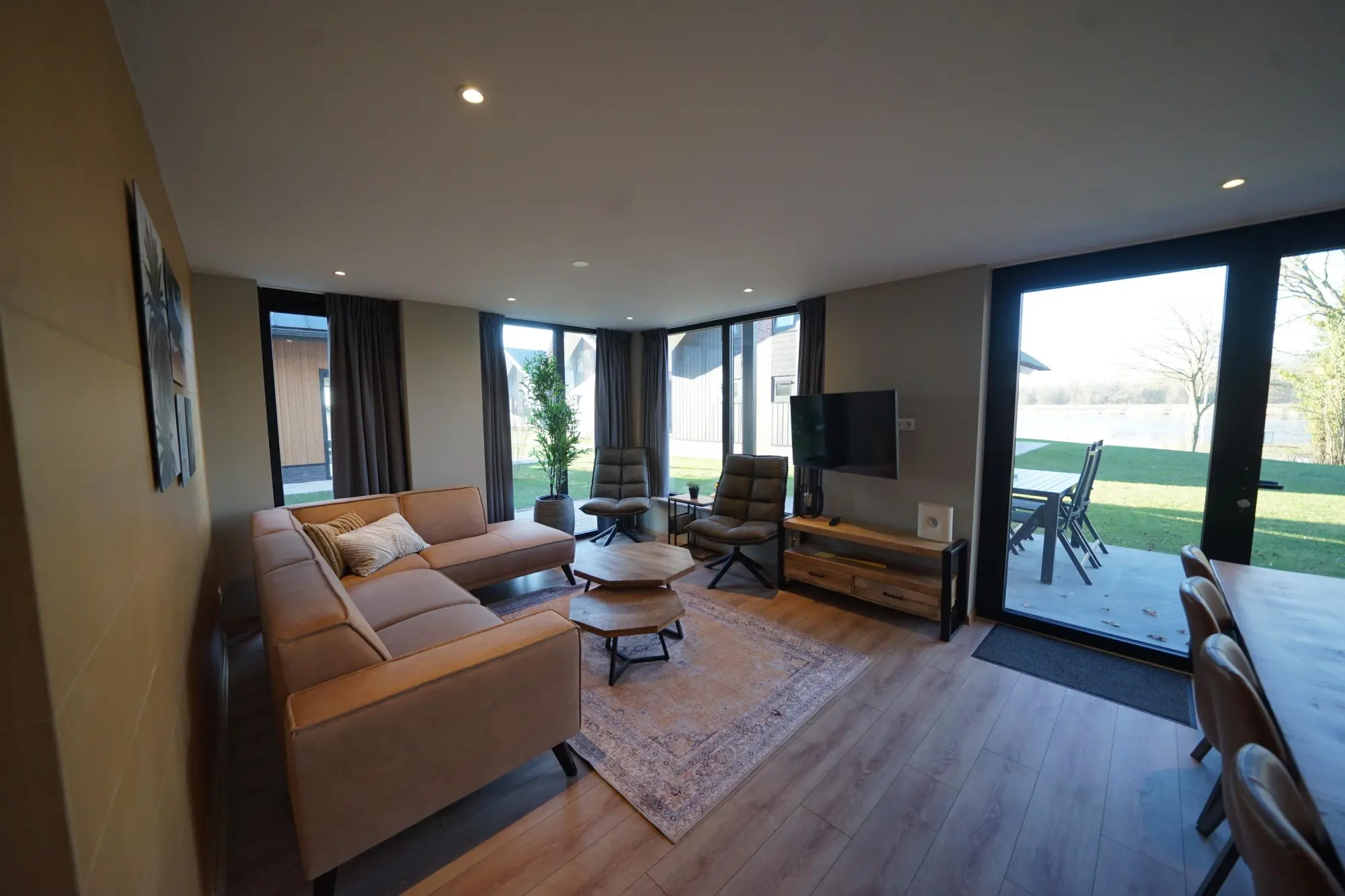 Meervilla 10 - Ruhe, viel Platz und eine schöne Aussicht: Das ist es, wofür diese Meervilla steht. Die großen Fenster sorgen für viel Tageslicht und vermitteln ein Gefühl von Freiheit. Der Schornstein und die robuste Seitenfassade verleihen dem Ferienhaus einen robusten Charakter, so dass es im Wohnzimmer im Winter, wenn es draußen stürmt und regnet, umso gemütlicher ist. Die offene Küche ist luxuriös eingerichtet und mit allen Küchenutensilien ausgestattet, die man in einer Küche erwarten kann. Vom Wohnzimmer aus gelangt man auch auf die Terrasse, die mit Gartenmöbeln ausgestattet ist und für entspannte Stunden im Freien sorgt.