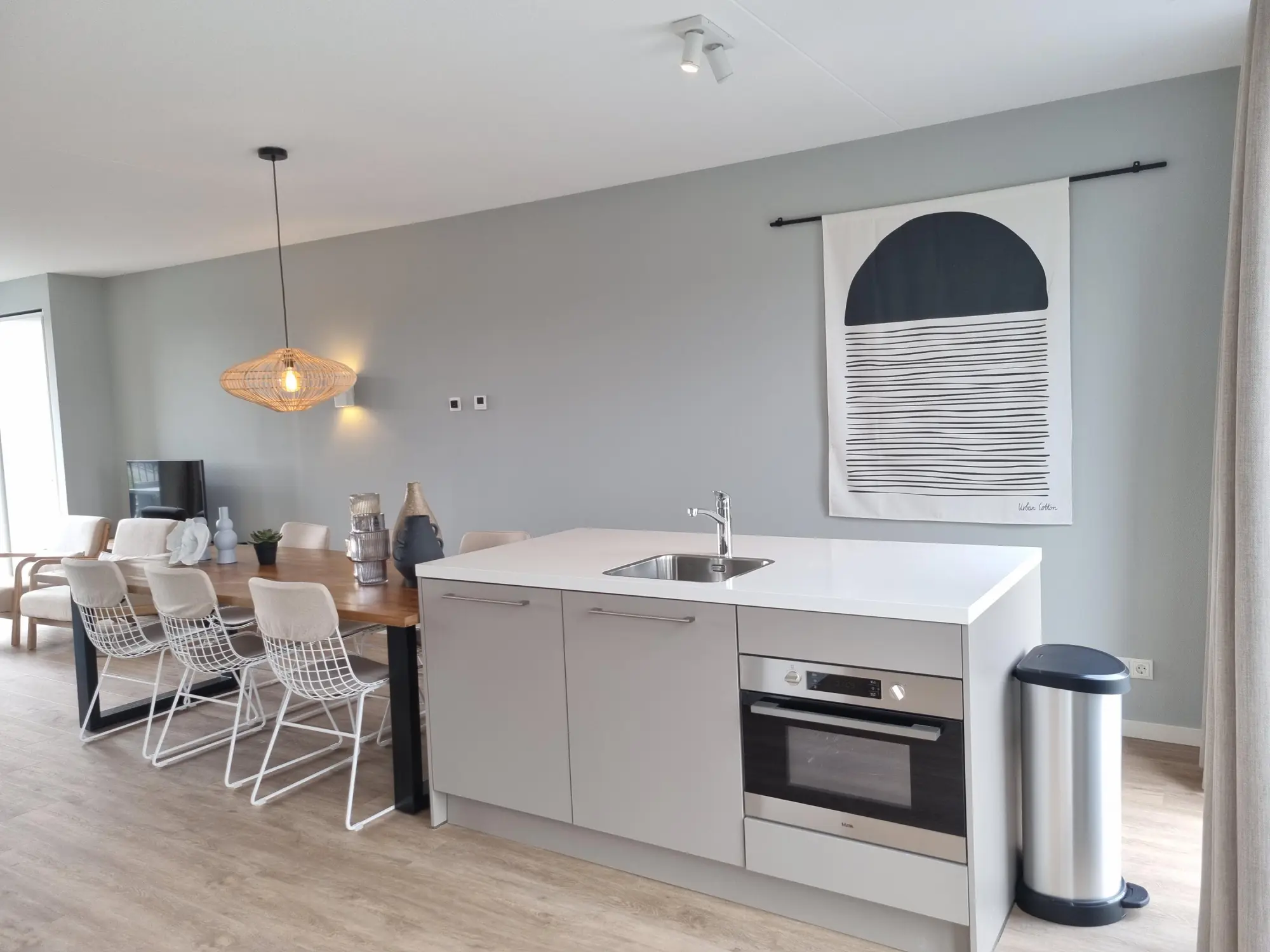 De Reeve 6 - Deze maisonnette van 90 vierkante meter is geschikt voor 6 personen en beslaat een eerste en tweede etage. De eerste verdieping, die u betreedt via een stalen trappenhuis aan de achterzijde, wordt vorm gegeven door een royale woonkamer met open keuken met een apart kookeiland, een groot balkon in Franse stijl en een separaat toilet. De tweede verdieping bestaat uit een brede overloop, een master bedroom met en suite een badkamer met inloopdouche, badmeubel en toilet, twee kleinere slaapkamers en een tweede badkamer met inloopdouche, badmeubel en toilet. Deze maisonnette heeft energielabel A en voldoet daarmee aan de hoogste duurzaamheidseisen.