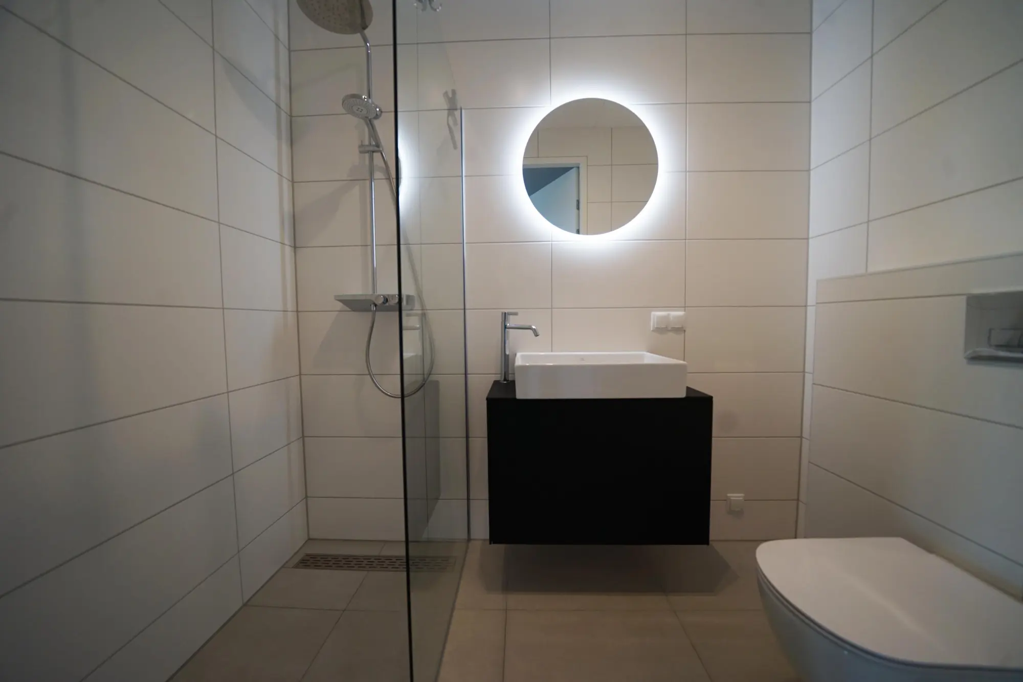 • Verwarming én koeling van het appartement worden gereguleerd door een lucht-water warmtepomp.