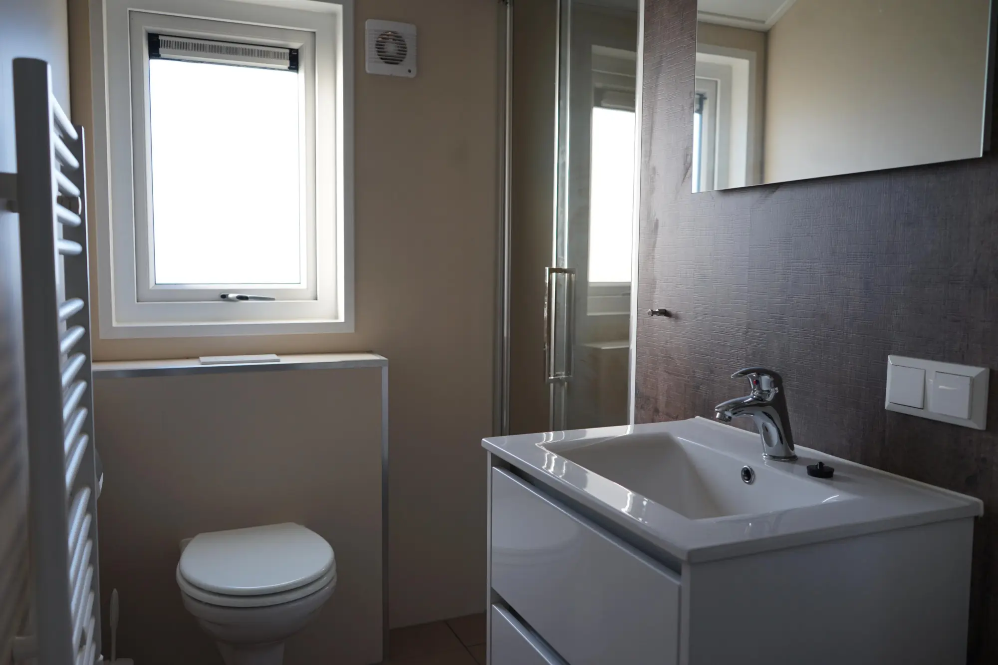 Velthorst Concept Eco - 4 ist ein freistehendes Chalet mit allen Annehmlichkeiten und einer gemütlichen Einrichtung. Das Chalet ist für 4 Personen geeignet und ebenerdig. Im hellen Wohnzimmer finden Sie eine Sitzecke mit Fernseher, einen Essbereich und eine reich ausgestattete Küche mit unter anderem einem Geschirrspüler, einer Kombi-Mikrowelle und einer Filterkaffeemaschine. Velthorst Concept Eco 4 verfügt über 2 Schlafzimmer mit jeweils 2 Einzelbetten. Das Badezimmer verfügt über eine Toilette, eine Dusche und ein Waschbecken. Velthorst Concept Eco 4 hat einen Garten mit Terrasse und Gartenmöbeln. Im Chalet steht Ihnen kostenloses WLAN zur Verfügung und Sie können 1 Auto parken.