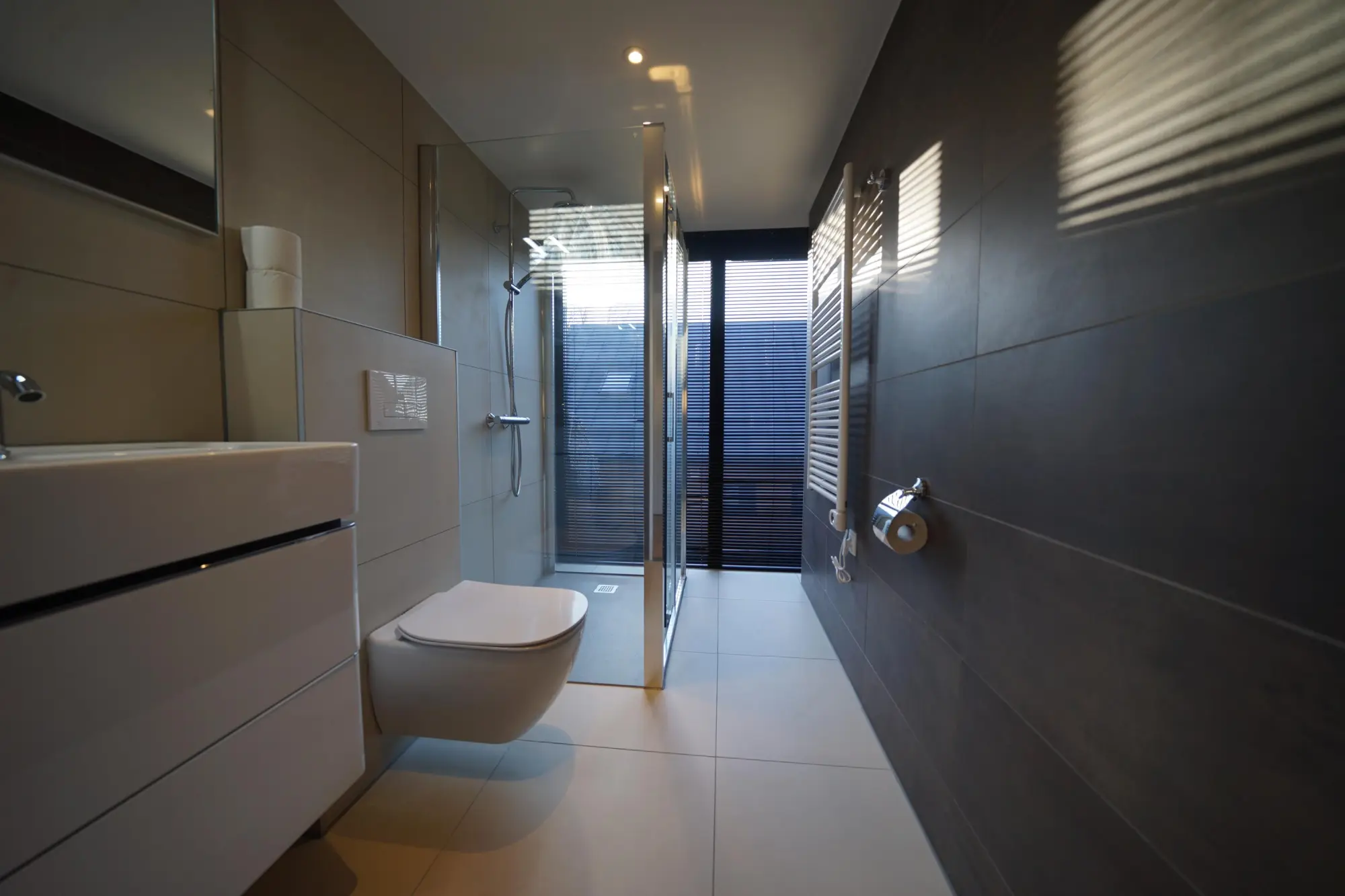 De bovenverdieping kent maar liefst vier slaapkamers met weer die mooie lichtinval door de grote (dak)ramen. Verder is er op deze verdieping een badkamer met douche, wastafel en toilet met fontein.