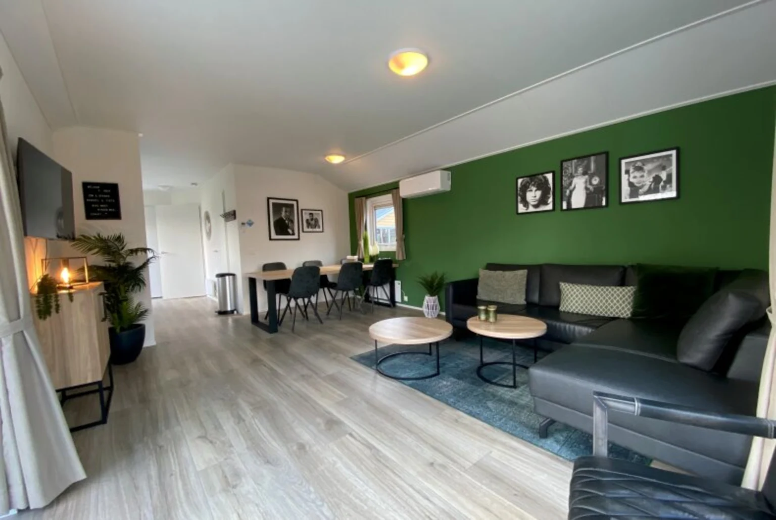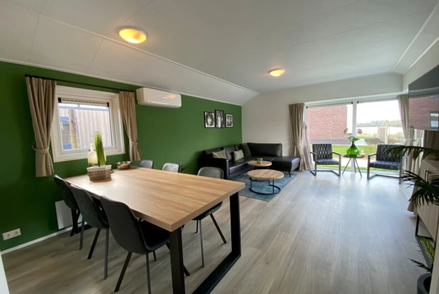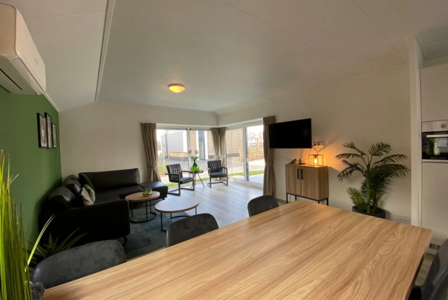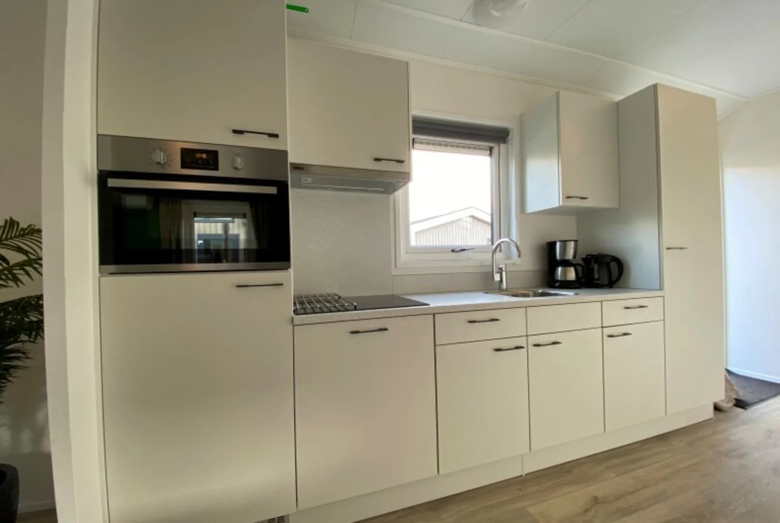 Innen überzeugt das Urlaubsdomizil mit einer luxuriösen Ausstattung. Hier trifft ein gemütliches Wohnzimmer auf eine voll ausgestattete Küche. 2 Schlafzimmer und ein Badezimmer mit Dusche und WC komplettieren das Ferienhaus.