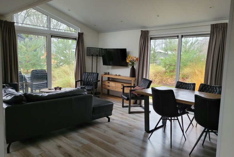 Hackfort Concept 6 - Das Ferienhaus Hackfort Concept 6 ist ein modernes Chalet mit einer zeitgemäßen Atmosphäre und allen Annehmlichkeiten, die Sie brauchen. Es ist ebenerdig und kann bis zu 6 Personen beherbergen. Das Wohnzimmer verfügt über eine gemütliche Sitzecke mit Fernseher, eine Essecke und eine Küche, die u.a. mit einem Geschirrspüler, einer Kombi-Mikrowelle, einer Kühl-Gefrierkombination und einer Filterkaffeemaschine ausgestattet ist. Insgesamt gibt es 3 Schlafzimmer, in denen jeweils 2 Einzelbetten stehen.