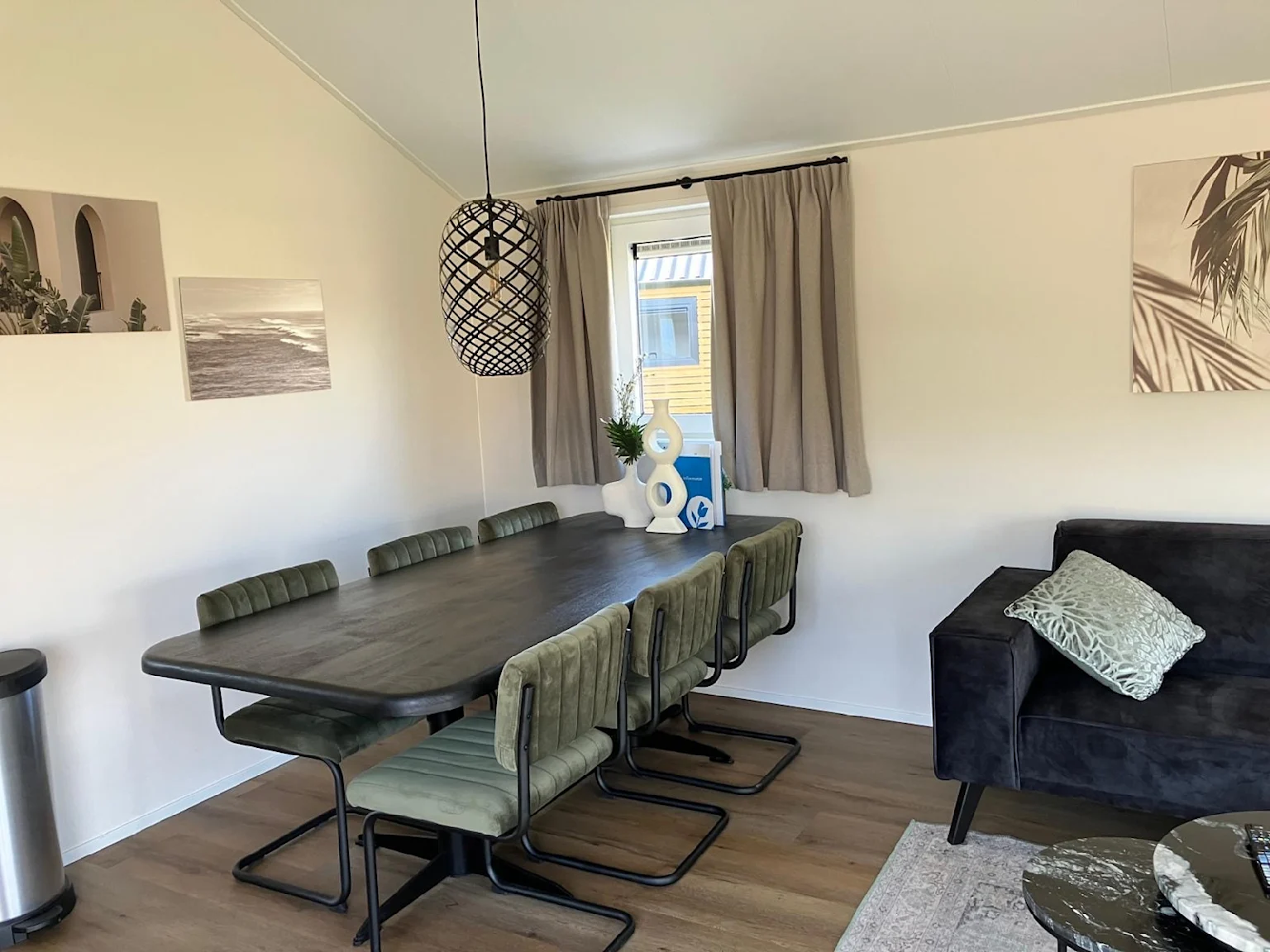 Velthorst 6 - Het vrijstaande chalet Velthorst 6 heeft een warm karakter met zijn kleurrijke interieur. Het is gelijkvloers en geschikt voor 6 personen. De lichte woonkamer heeft een heerlijke zithoek met televisie, een eethoek voor 6 personen en de keuken is van alle gemakken voorzien. Denk aan een vaatwasser, combimagnetron, filter koffiezetapparaat en spoelbak. In het chalet bevinden zich 3 slaapkamers, waarvan 1 met 2 eenpersoonsbedden, 1 met een tweepersoonsbed en 1 met een stapelbed. De nette badkamer heeft een douche, toilet en wastafel.