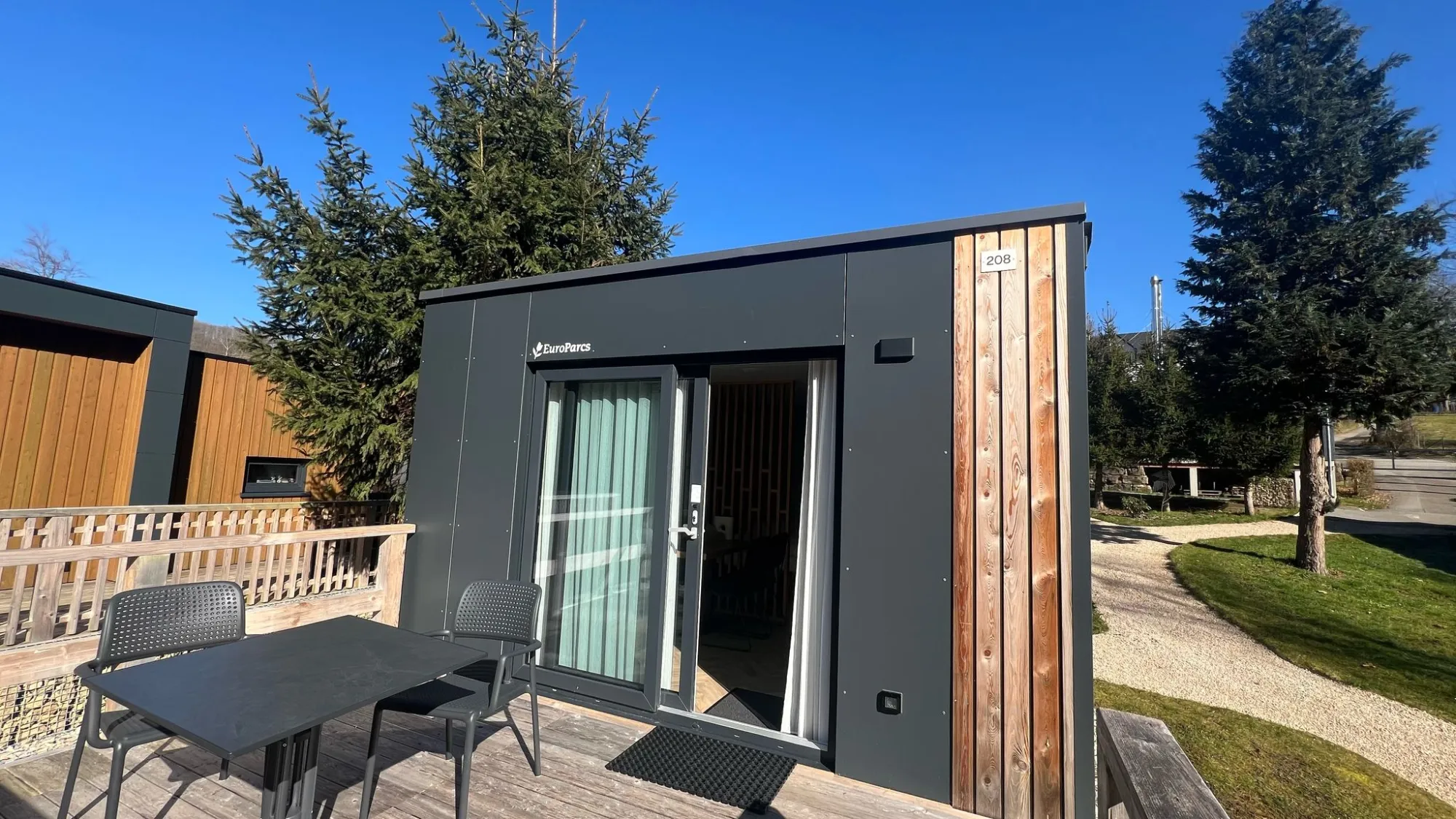 Tiny House 2 - Dieses Tiny House ist für 2 Personen geeignet. Die schöne Lage mit Blick auf den Garten erfreut jeden Tag aufs Neue, aber auch das Haus selbst ist unverwechselbar. Sowohl innen als auch außen wurden pflegeleichte Materialien verwendet und das Haus ist vollständig isoliert und doppelt verglast. Durch die großen Fenster haben Sie jeden Tag einen schönen Blick ins Grüne. Das gilt auch für die Terrasse an der Vorderseite des Ferienhauses.