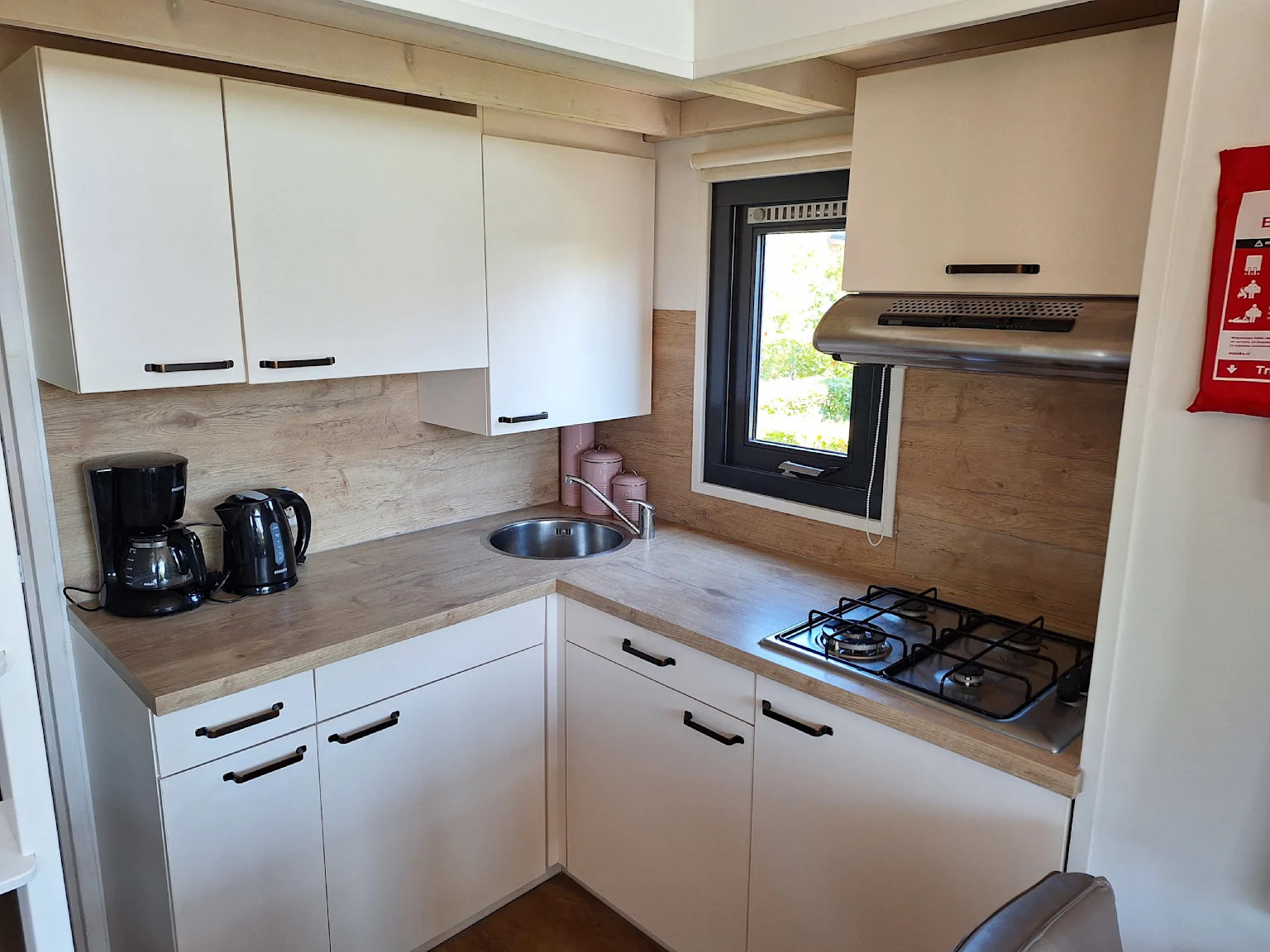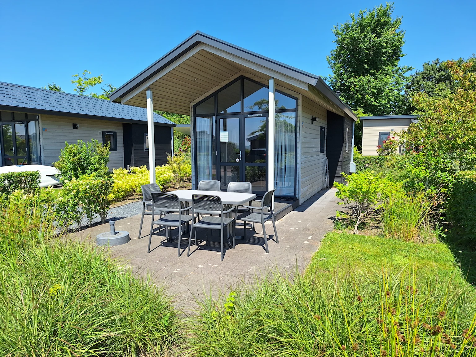 Lodge 4 - Der Type 'Lodge' eignet sich für vier Personen. Dieses gemütliche Ferienhaus hat eine Glasfassade, die Ihnen einen tollen Rundum-Blick bietet. Im Erdgeschoss befinden sich eine offene Küchenecke, ein Badezimmer und ein Schlafzimmer. Vom Wohnzimmer aus gelangen Sie in das zweite Schlafzimmer auf dem Dachboden.