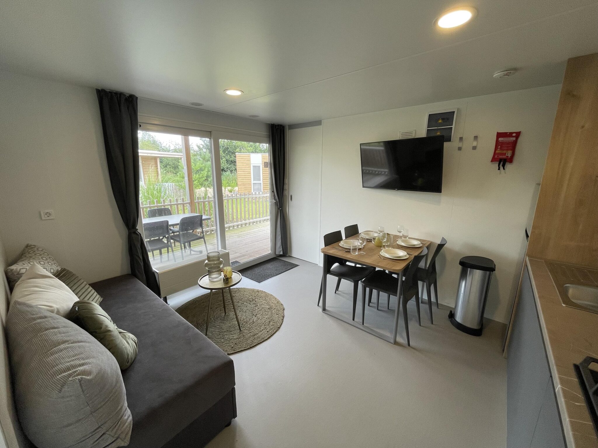 Cosy Unique - Das Cosy Unique 4* ist ein modernes und komfortables Chalet mit einer gemütlichen, hölzernen Atmosphäre. Das freistehende Chalet ist ebenerdig und für 4 Personen geeignet. Im Gemeinschaftsraum finden Sie eine Couch mit Fernseher, eine Essecke und eine offene Küche mit Filterkaffeemaschine, Kühl- und Gefrierschrank und Wasserkocher.