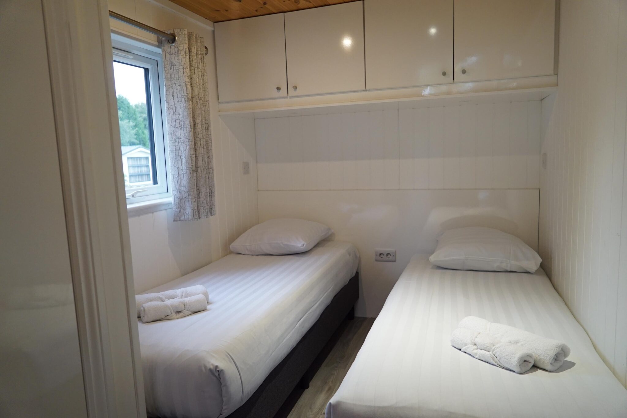 Es gibt insgesamt 2 Schlafbereiche, von denen einer im Erdgeschoss in direkter Verbindung mit dem Wohnzimmer liegt. Der andere Schlafbereich ist über eine Treppe zu erreichen und man kann hier nicht aufrecht stehen. Es gibt auch ein Badezimmer mit Dusche, Waschbecken und Toilette. Draußen haben Sie Ihre eigene möblierte Terrasse. Sie können Ihr Auto in der Nähe des Chalets parken und es steht kostenloses W-LAN zur Verfügung.